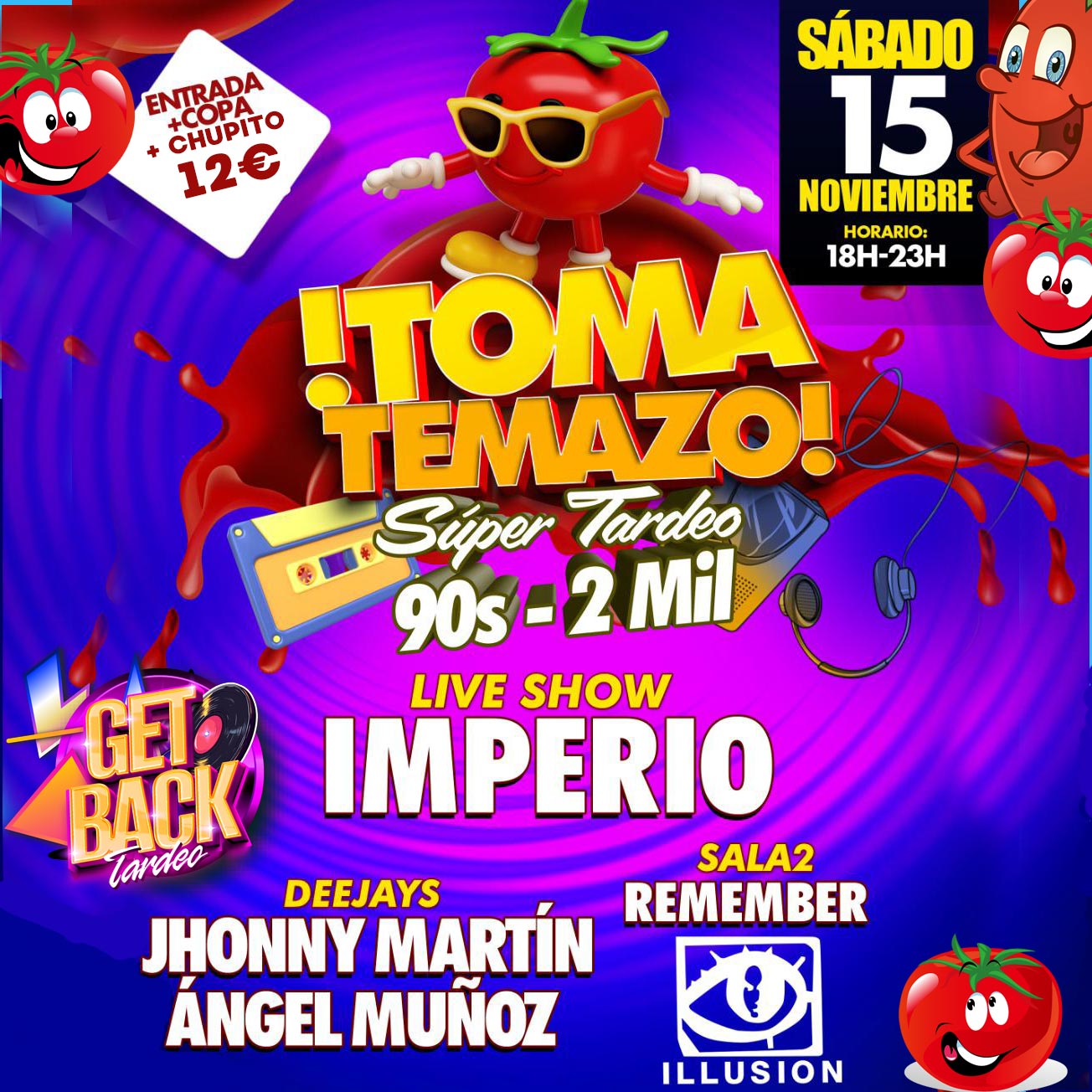 En UNA DE LAS CABINAS este sábado de GET BACK & TOMATEMAZO tendremos a los deejays JOHNNY MARTIN & ÁNGEL MUÑOZcon lo mejor de los 80´s, 90´s, 00´s, y los HITS & éxitos de siempre Y EN LA OTRA CABINA a J.LOUIS + JUAN CRUZ + IVÁN BELTRÁN con la de la fiesta homenaje a ILLUSION